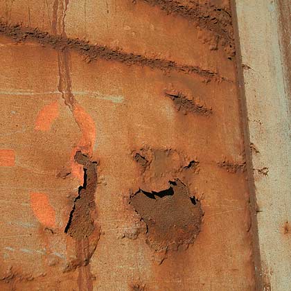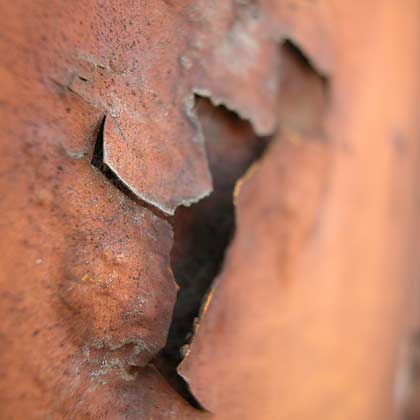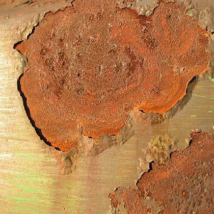 Iron oxide, the chemical Fe2O3, is common because iron combines very readily with oxygen -- so readily, in fact, that pure iron is only rarely found in nature. Iron (or steel) rusting is an example of corrosion -- an electrochemical process involving an anode (a piece of metal that readily gives up electrons), an electrolyte (a liquid that helps electrons move) and a cathode (a piece of metal that readily accepts electrons). When a piece of metal corrodes, the electrolyte helps provide oxygen to the anode. As oxygen combines with the metal, electrons are liberated. When they flow through the electrolyte to the cathode, the metal of the anode disappears, swept away by the electrical flow or converted into metal cations in a form such as rust.