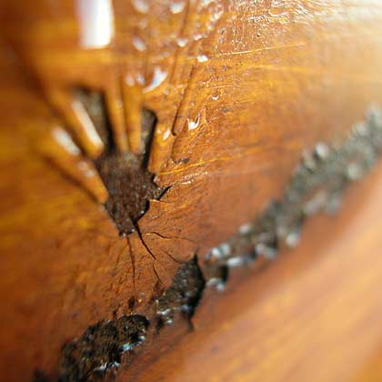When a drop of water hits an iron object, two things begin to happen almost immediately. First, the water, a good electrolyte, combines with carbon dioxide in the air to form a weak carbonic acid, an even better electrolyte. As the acid is formed and the iron dissolved, some of the water will begin to break down into its component pieces -- hydrogen and oxygen. The free oxygen and dissolved iron bond into iron oxide, in the process freeing electrons. The electrons liberated from the anode portion of the iron flow to the cathode, which may be a piece of a metal less electrically reactive than iron, or another point on the piece of iron itself.