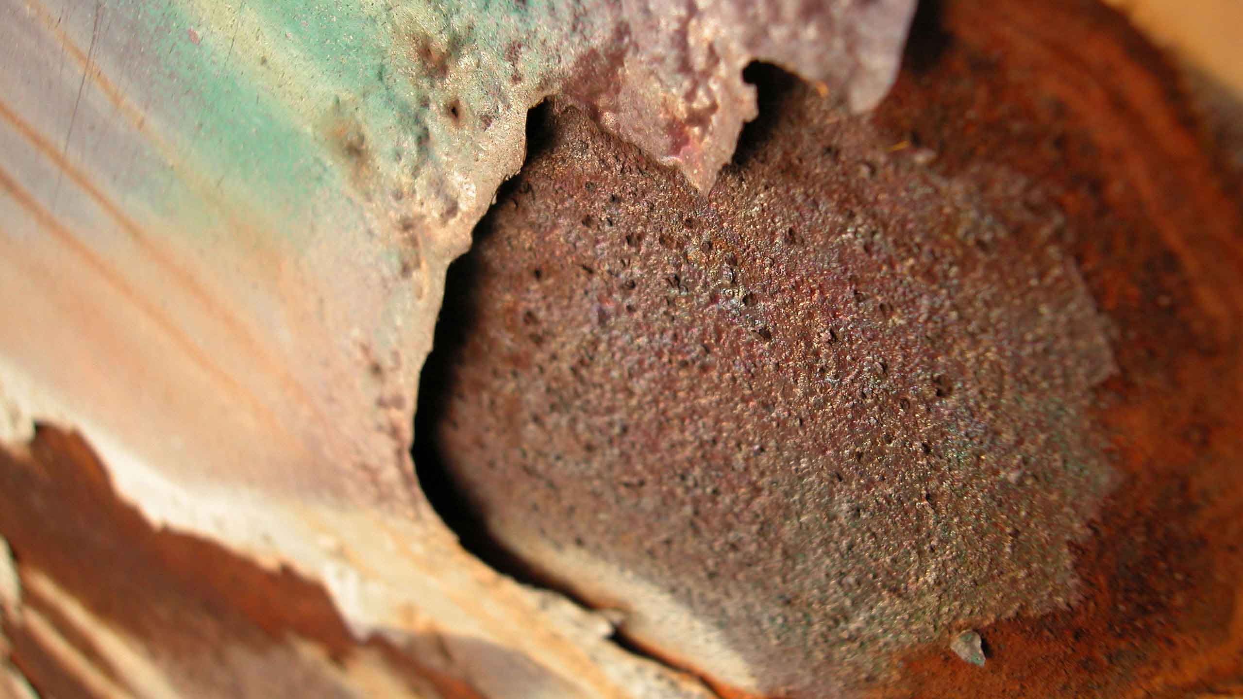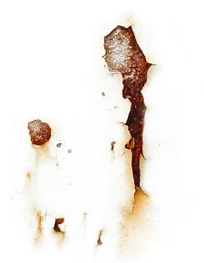For iron to become iron oxide, three things are required: iron, water and oxygen. Here's what happens when the three get together:
