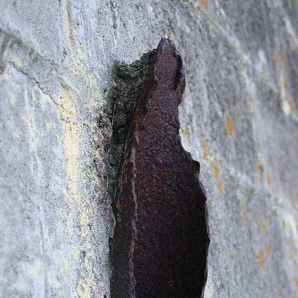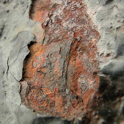 Iron oxide, the chemical Fe2O3, is common because iron combines very readily with oxygen -- so readily, in fact, that pure iron is only rarely found in nature. Iron (or steel) rusting is an example of corrosion -- an electrochemical process involving an anode (a piece of metal that readily gives up electrons), an electrolyte (a liquid that helps electrons move) and a cathode (a piece of metal that readily accepts electrons). When a piece of metal corrodes, the electrolyte helps provide oxygen to the anode. As oxygen combines with the metal, electrons are liberated. When they flow through the electrolyte to the cathode, the metal of the anode disappears, swept away by the electrical flow or converted into metal cations in a form such as rust.